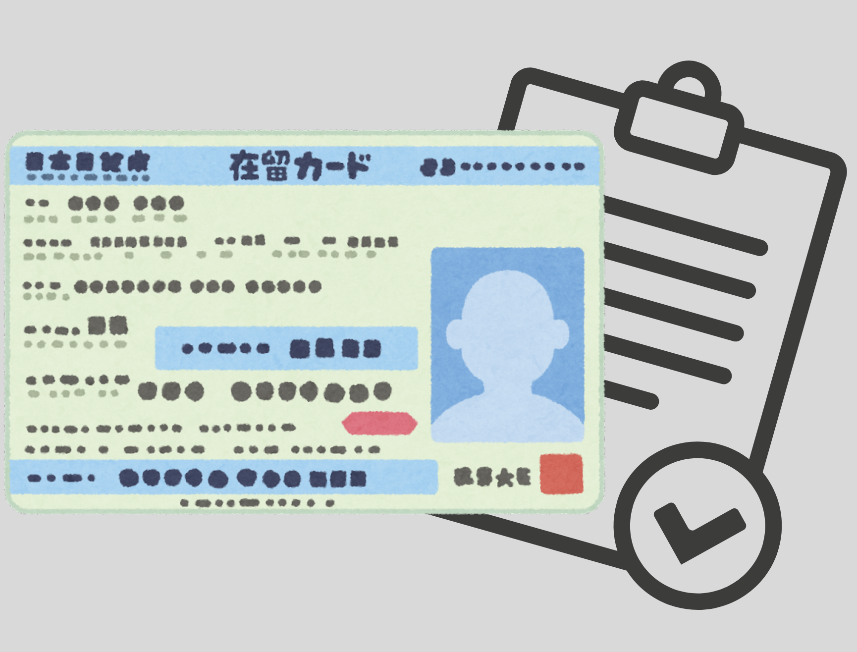 空港にて、入国管理局が旅券に上陸許可の証印を押し、在留カードを交付します(長期コース)。