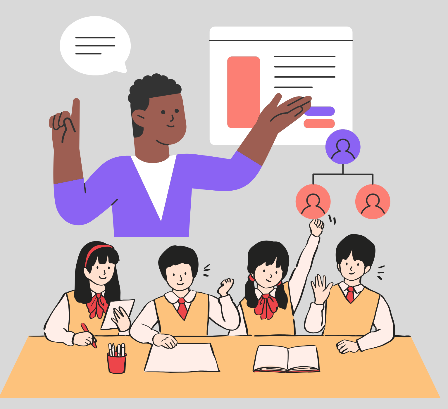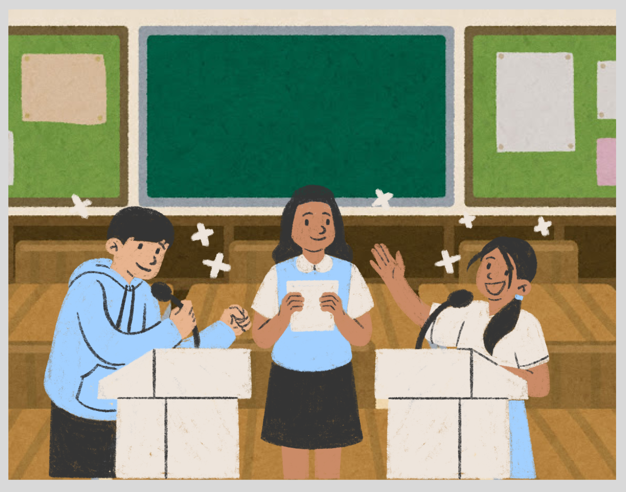 学校でオリエンテーションやプレースメントテストを行います。